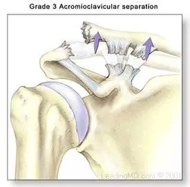 A fall at the shoulder can cause an “AC Separation”. This causes pain, swelling, and sometimes deformity that makes it appear as if the collar bone “sticks up”.